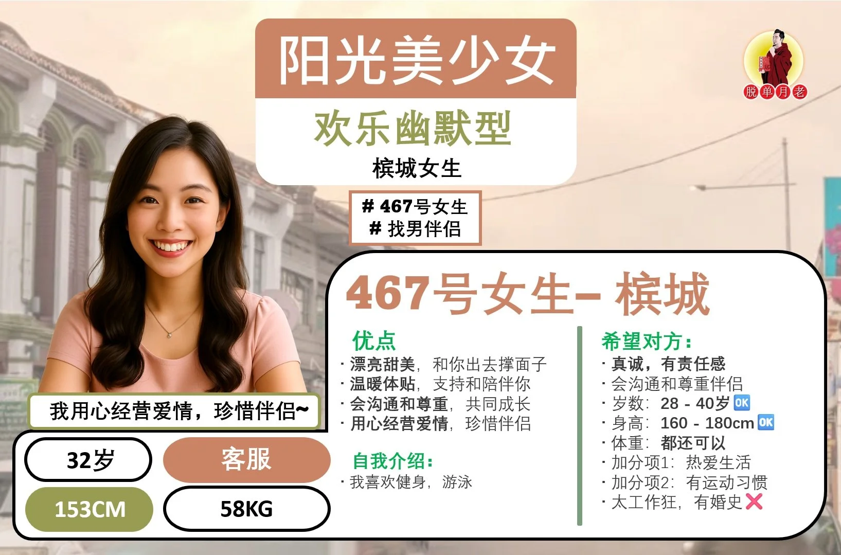这位【槟城 - 欢乐随性女】简介如下: