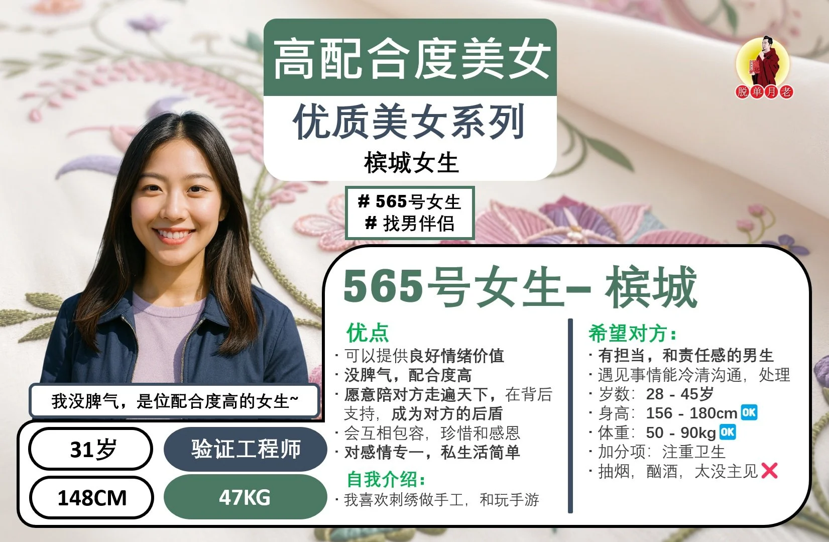 #脱单月老 #大马相亲公司 #配对服务 #姻缘 #吉打 #槟城 #霹雳 #编号429 #你的脱单对象 #槟城 #温柔体贴 #共同进退女 #找男伴侣 #31岁 #会计