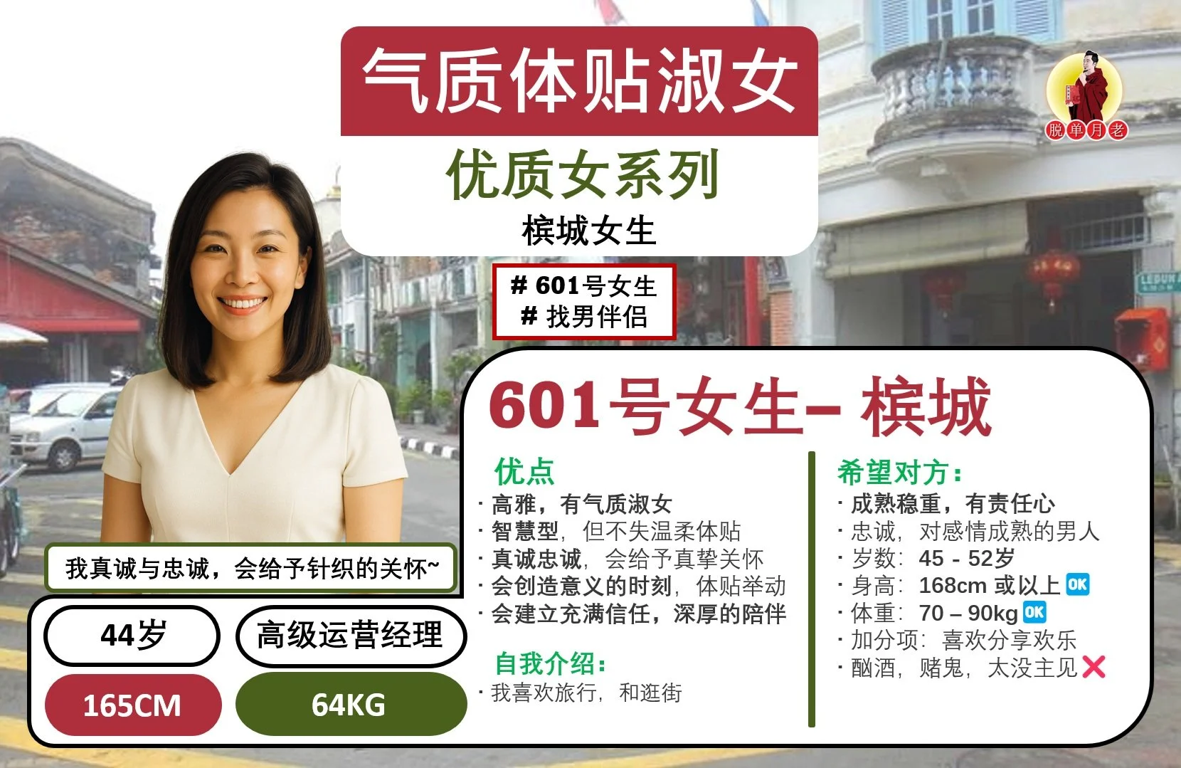 ✅ 岁数:35 - 45岁 #全马 #单身男 (优先考虑 #槟城 #雪隆区 男生,不过全马都可以接受)