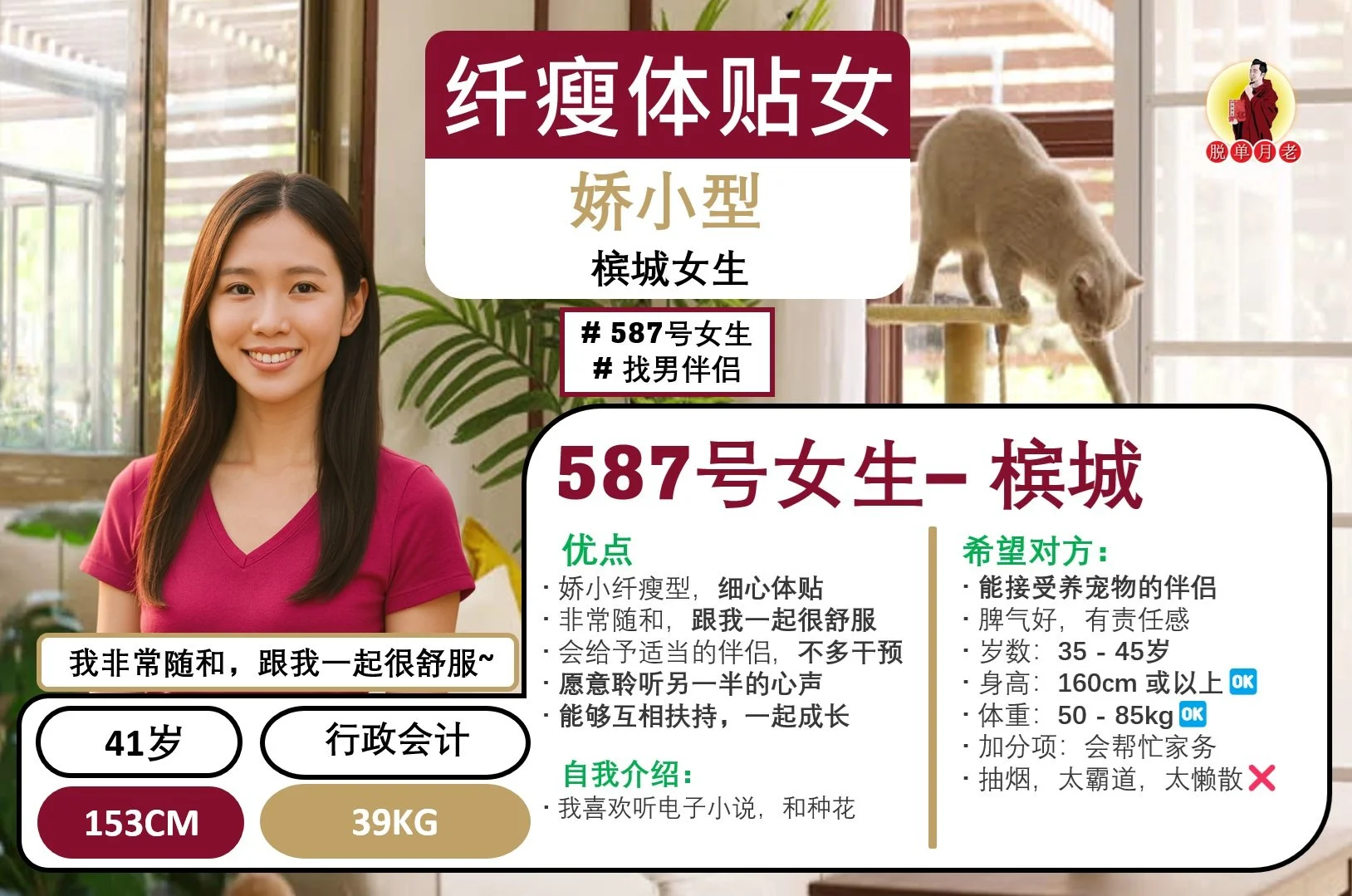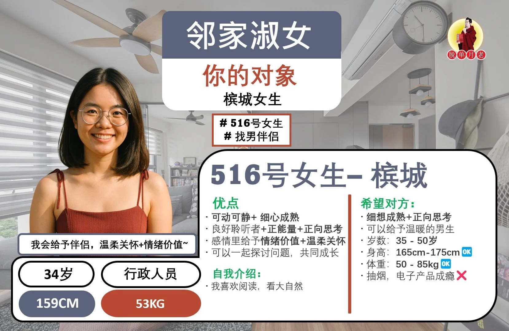 #编号404 #你的脱单对象 #明白事理女 #槟城 #找男伴侣 #33岁 #行政