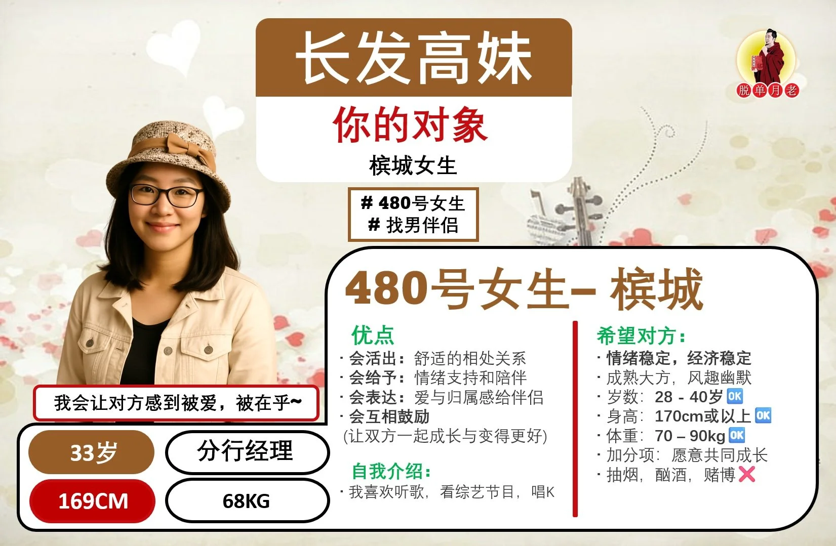 #编号443 #你的脱单对象 #520精选系列 #槟城 #斯文甜美靓女 #开朗型 #33岁 #Executive