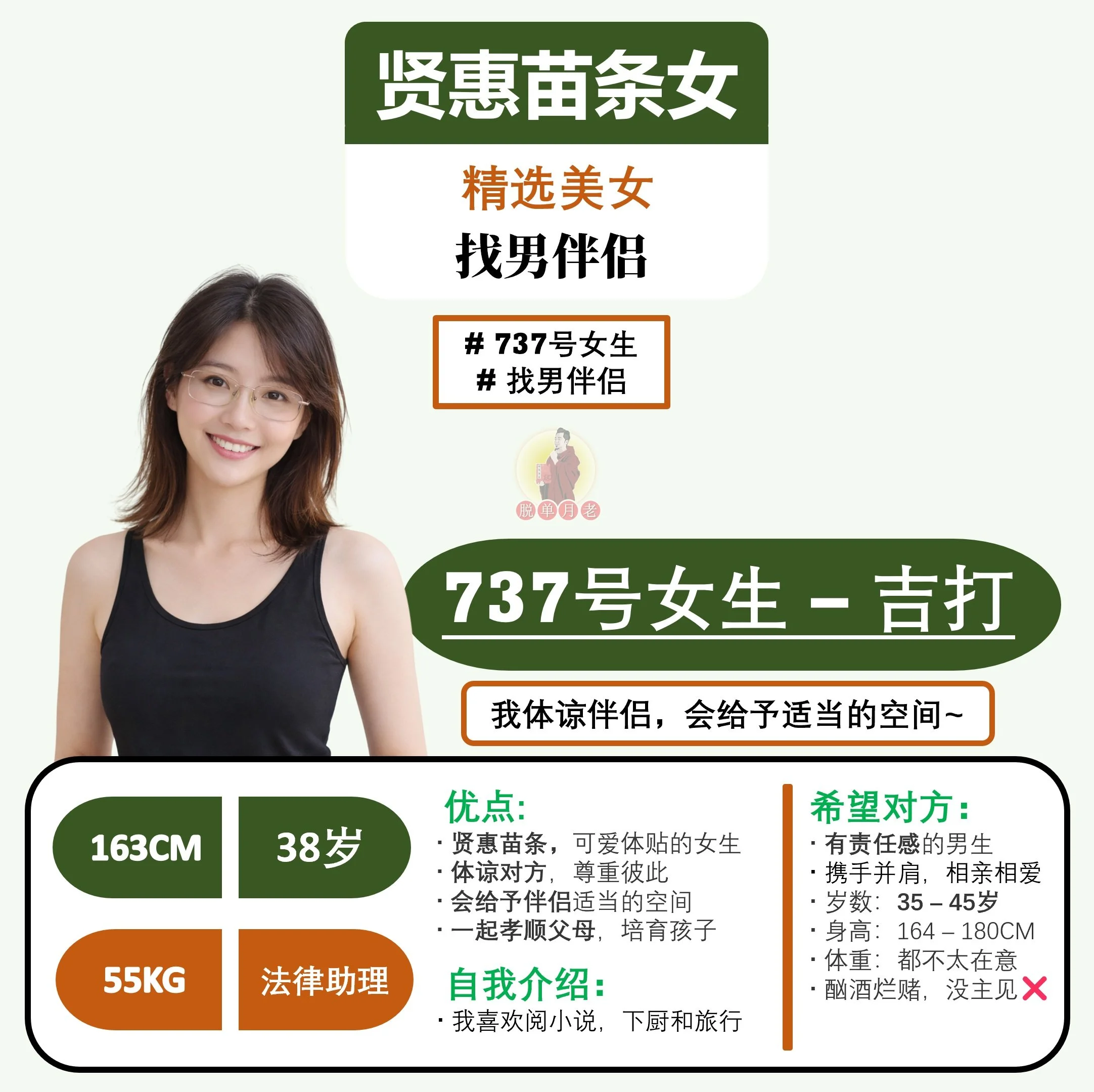 #脱单月老 #大马 #相亲公司 #交友脱单平台 #配对服务 #雪兰莪 #吉隆坡 #编号761 #你的脱单对象 #吉隆坡 #真诚温和熟女 #找男伴侣 #37岁 #美容行业 #宠物行业