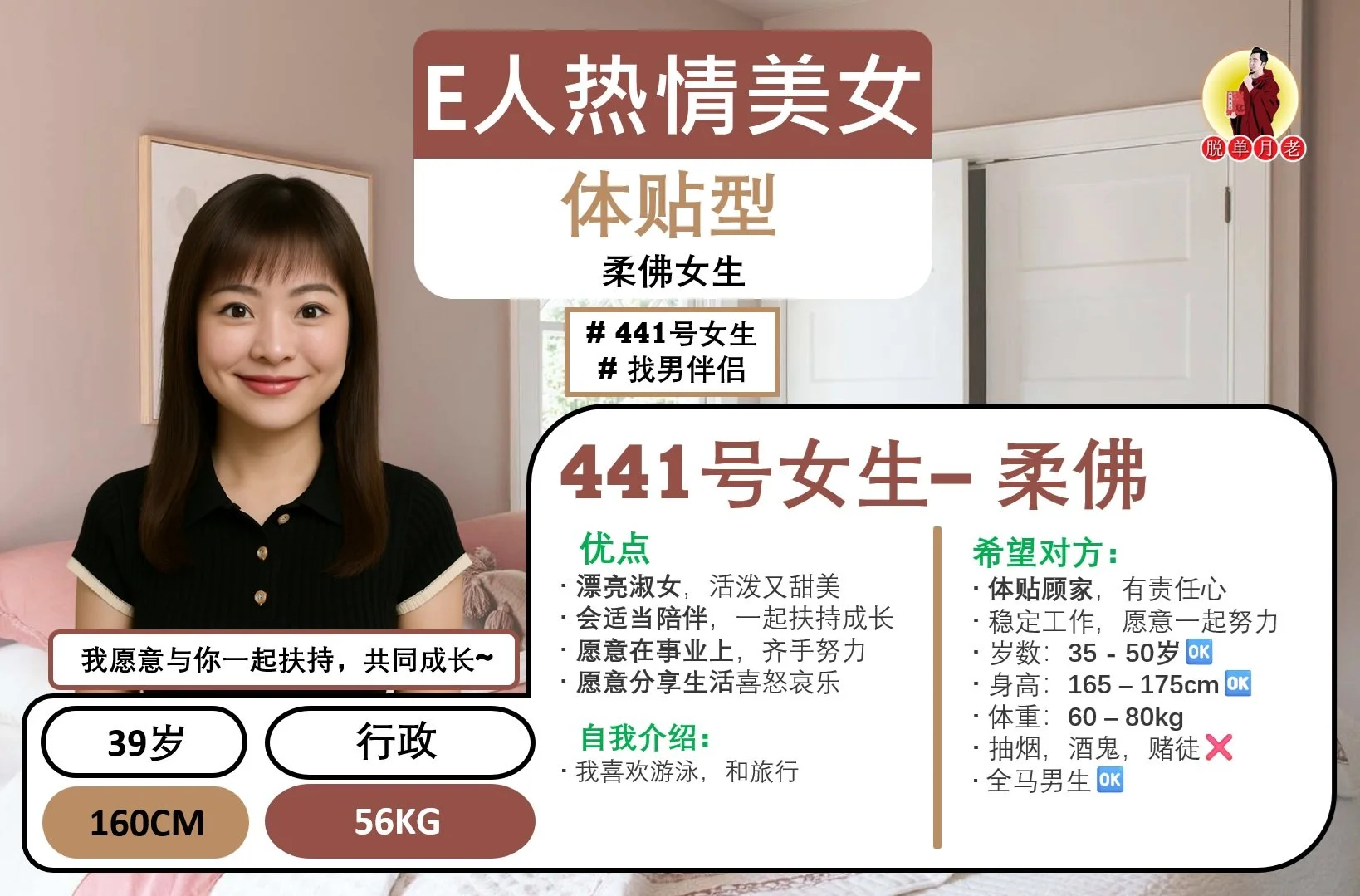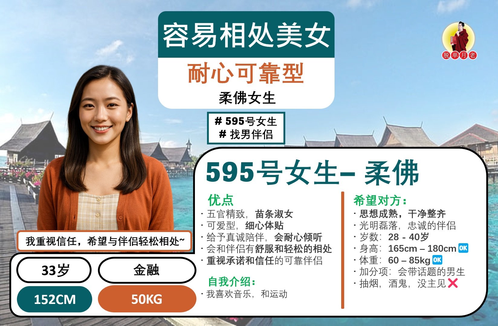 #脱单月老 #大马相亲公司 #配对服务 #姻缘 #全马新 #编号431 #你的脱单对象 #柔佛新山 #成熟撒娇 #乐于助人女 #找男伴侣 #33岁 #会计助理