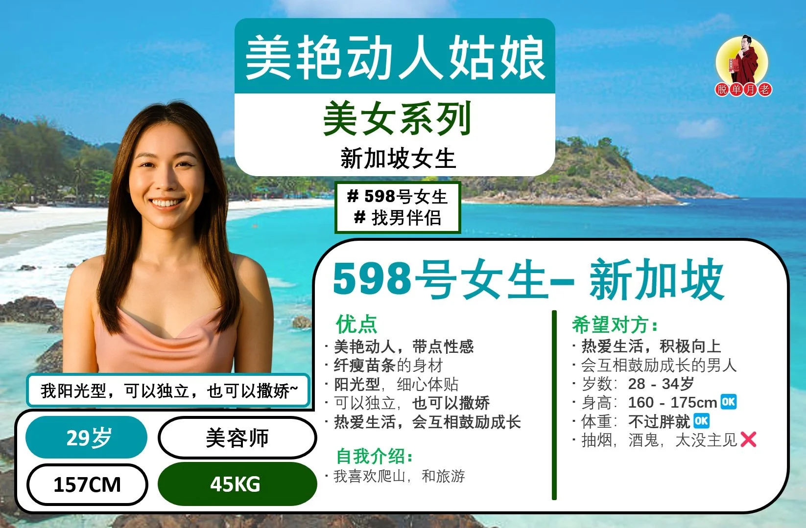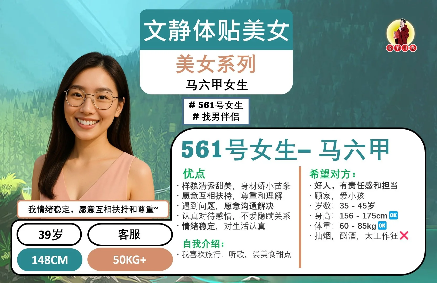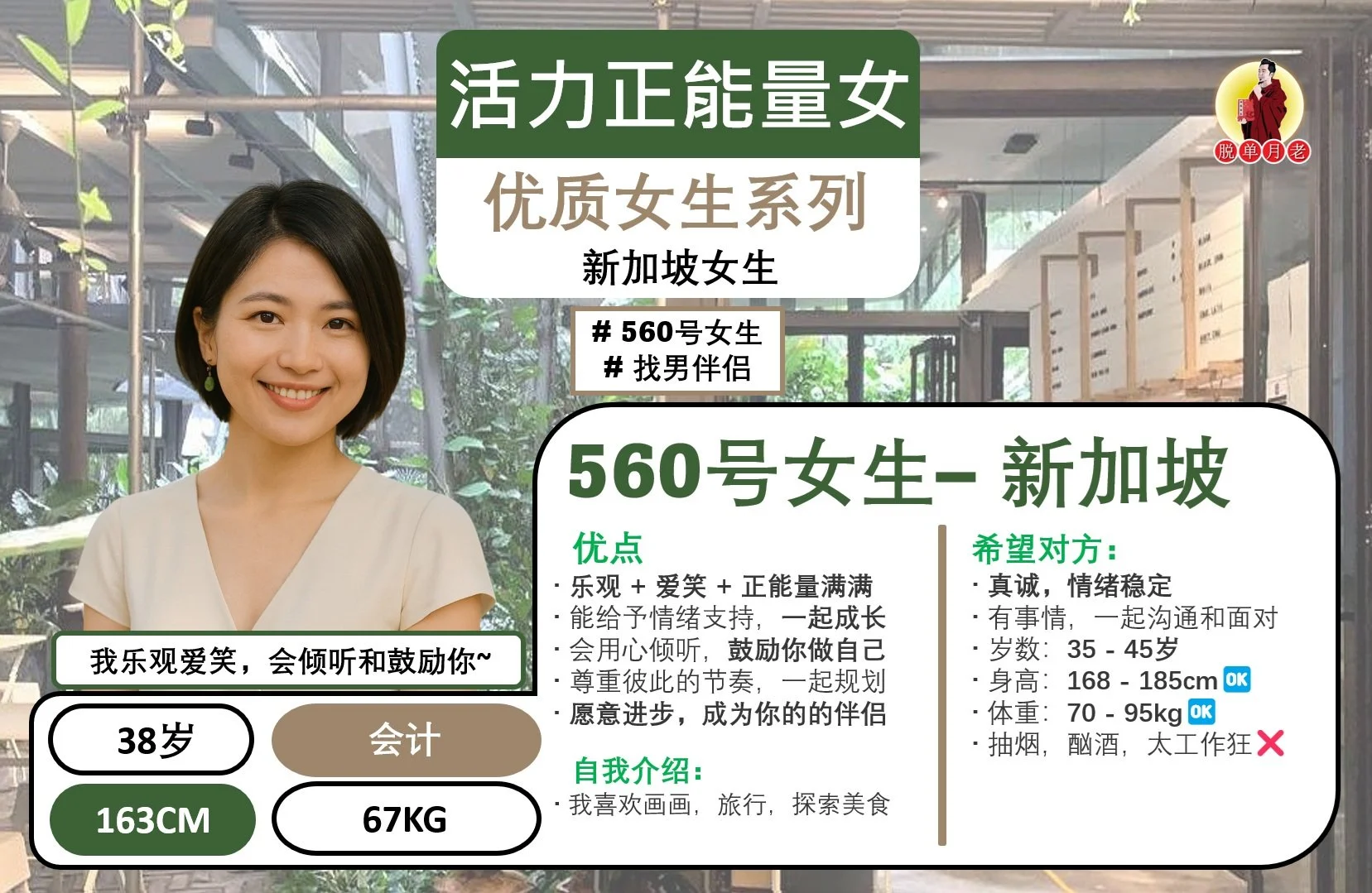 #脱单月老 #大马相亲公司 #配对服务 #姻缘 #马六甲 #编号401 #你的脱单对象 #优质美女精选系列 #运动型 #甜美邻家女 #马六甲 #找男伴侣 #35岁 #客户经理