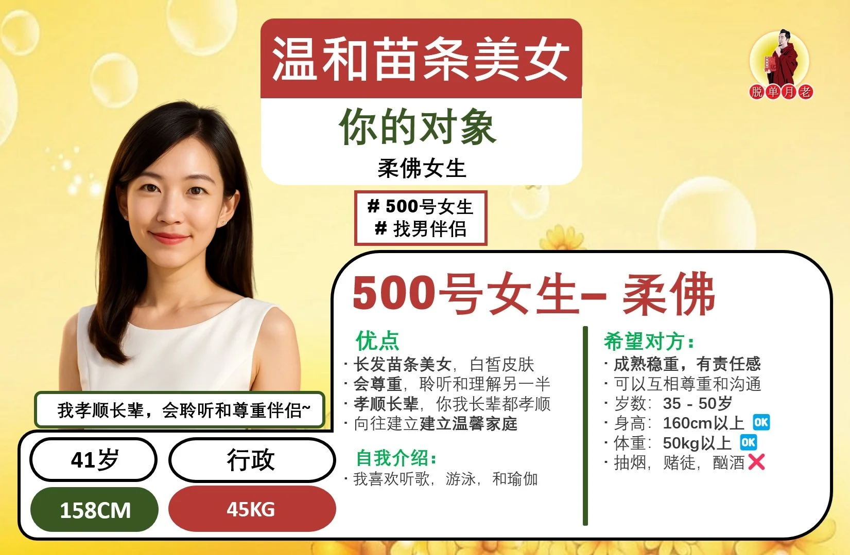 ✅ 岁数:35 - 45岁 #单身