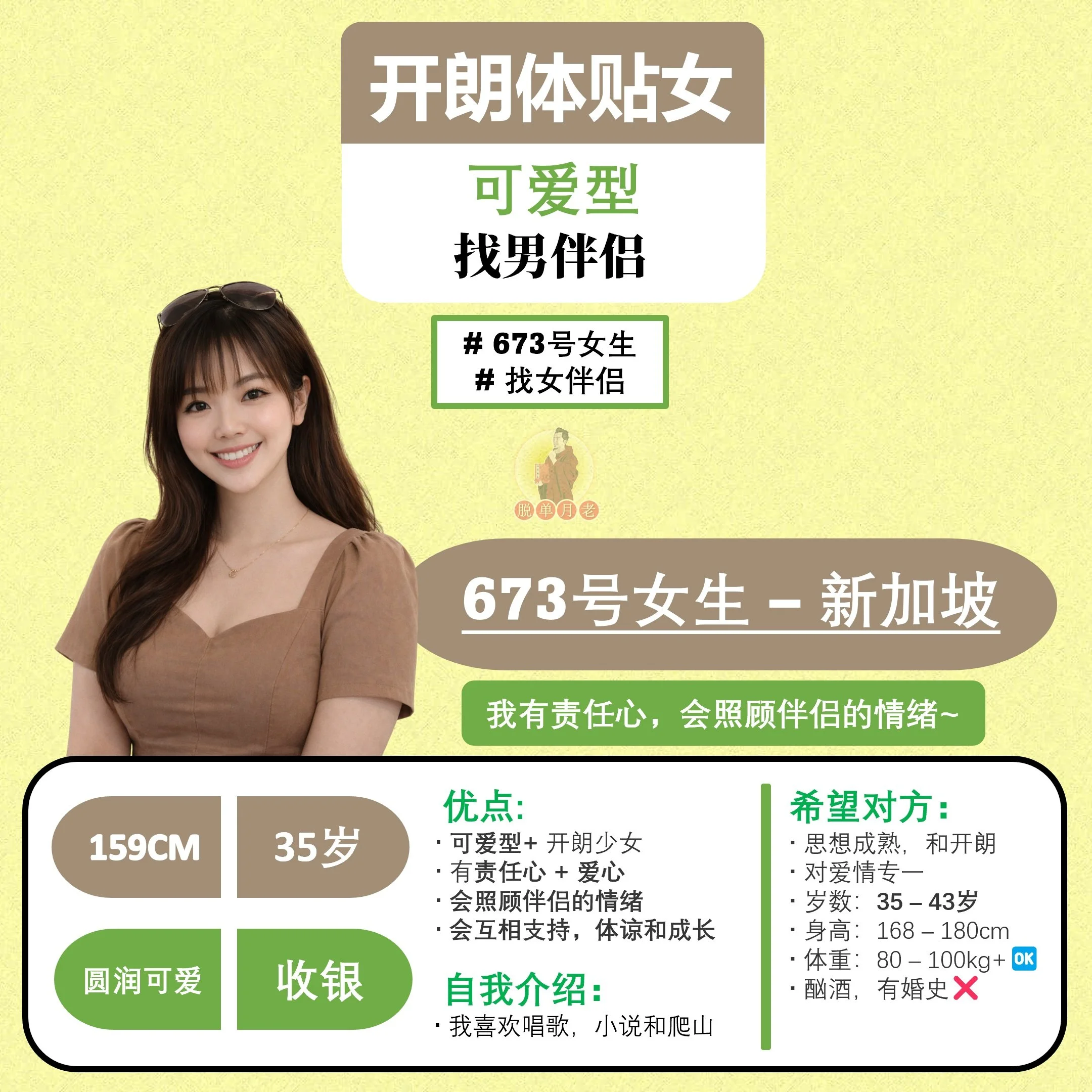 #单身绅士们 - 小编认识的这位 #单身女,可以简单形容 为《娇小玲珑的邻家女》🥰 她是一位成熟阳光,非常开朗健谈的女生,有智慧,但在感情中绝对不失女人味🤭
