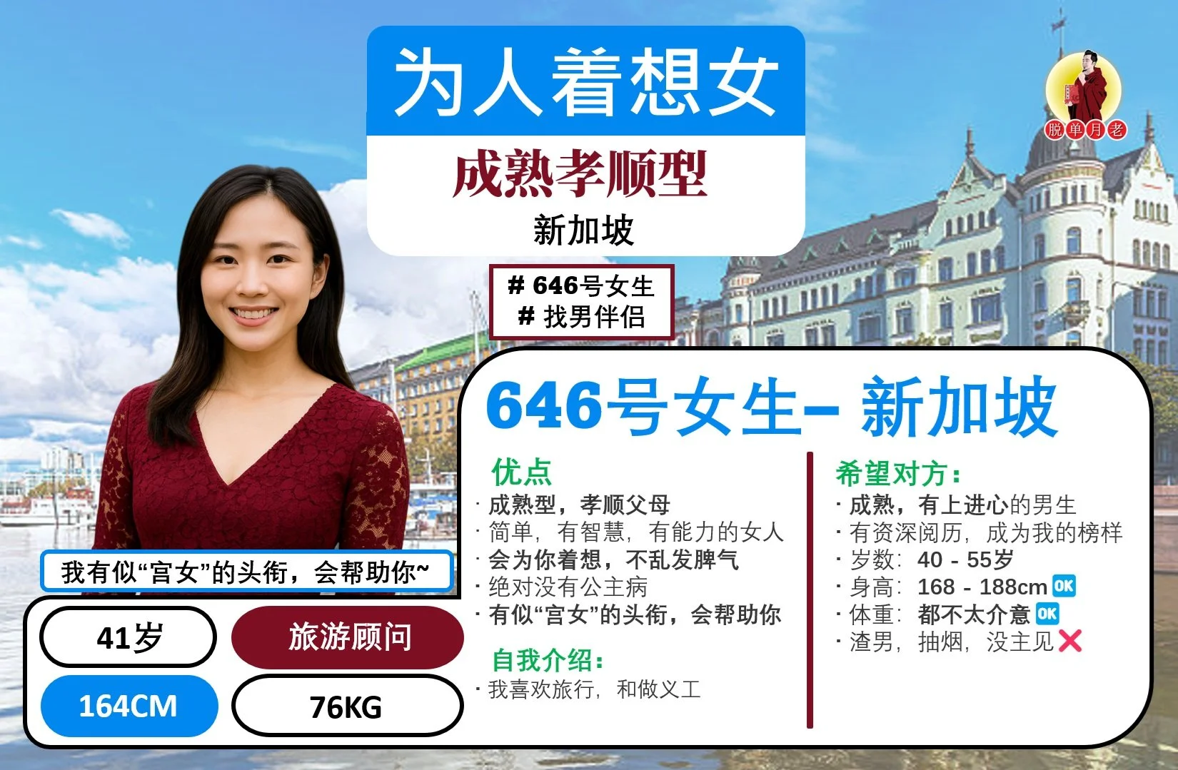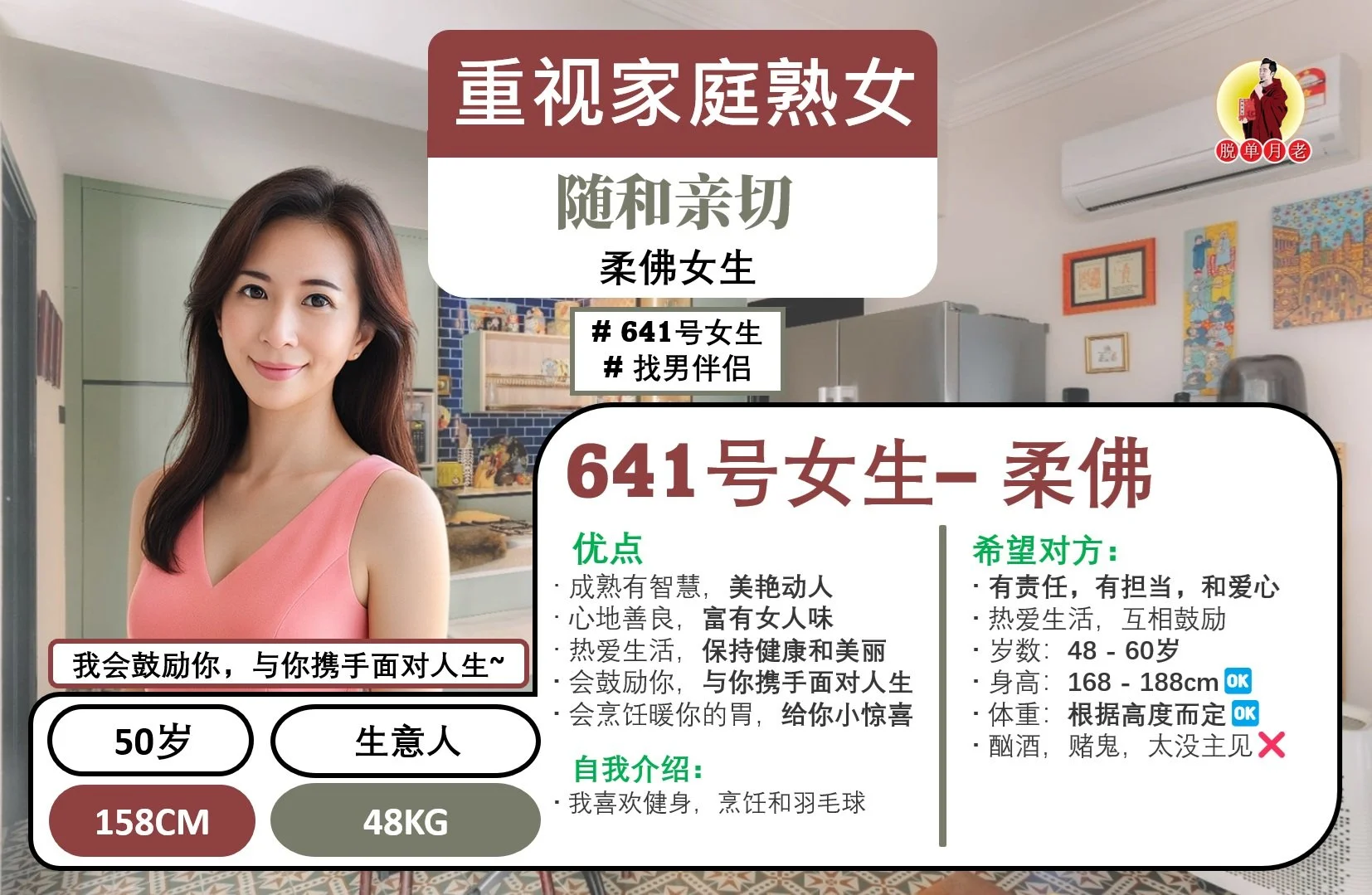这位【马六甲 - 成熟孝顺女】简介如下: