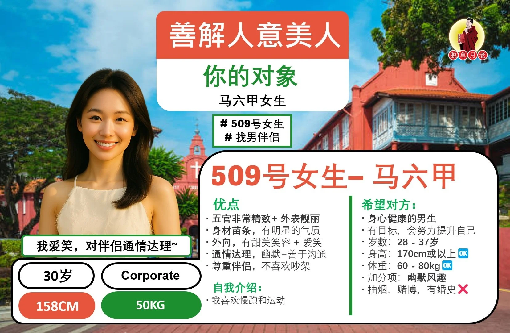 #编号699 #你的脱单对象 #优质美女 #马六甲 #幽默善良 #爱笑靓丽美女 #找男伴侣 #31岁 #Corporate